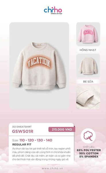 Dòng sản phẩm: Áo nỉ bé gái CHIHO GSW501R