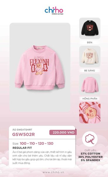 Dòng sản phẩm: Áo nỉ bé gái CHIHO GSW502R