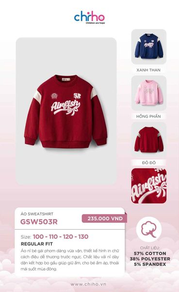 Dòng sản phẩm: Áo nỉ bé gái CHIHO GSW503R