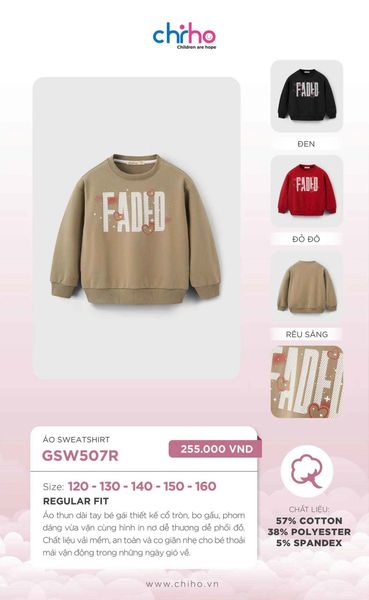 Dòng sản phẩm: Áo nỉ bé gái CHIHO GSW507R