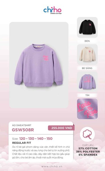 Dòng sản phẩm: Áo nỉ bé gái CHIHO GSW508R