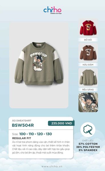 Dòng sản phẩm: Áo Sweatshirt bé trai CHIHO BSW504R