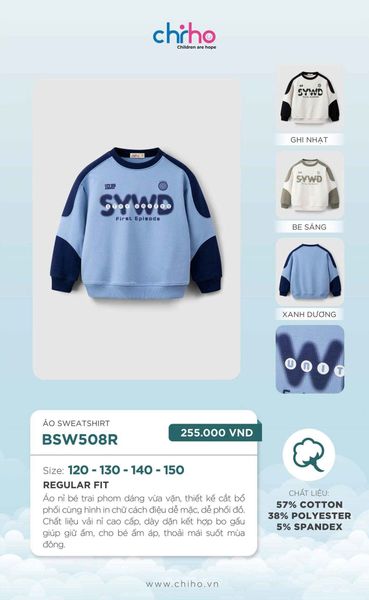 Dòng sản phẩm: Áo Sweatshirt bé trai CHIHO BSW508R