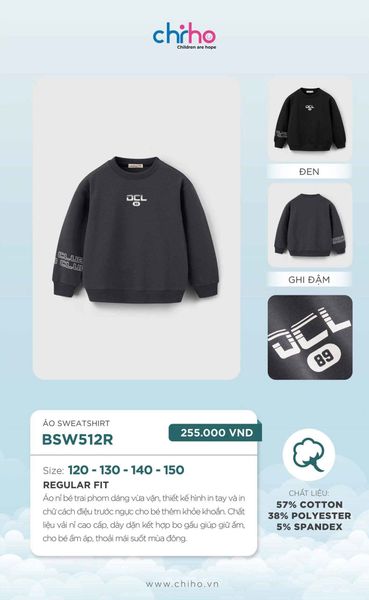Dòng sản phẩm: Áo Sweatshirt bé trai CHIHO BSW512R