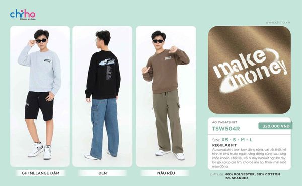 Dòng sản phẩm: Áo sweatshirt teen boy TSW504R