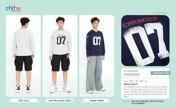 Dòng sản phẩm: Áo sweatshirt teen boy TSW505R