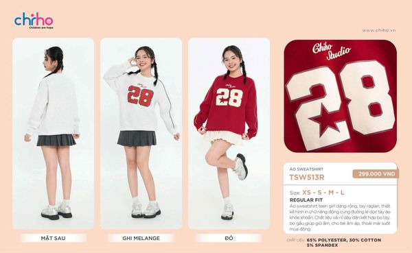 Dòng sản phẩm: Áo sweatshirt teen girl TSW513R