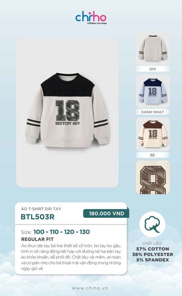 Dòng sản phẩm: Áo T-shirt bé trai dài tay BTL503R
