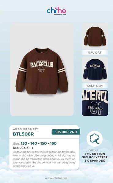 Dòng sản phẩm: Áo T-shirt bé trai dài tay BTL508R