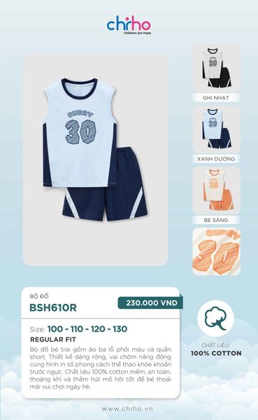 Dòng sản phẩm: Bộ đồ bé trai CHIHO BSH610R