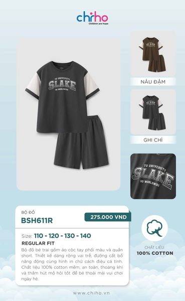 Dòng sản phẩm: Bộ đồ bé trai CHIHO BSH611R