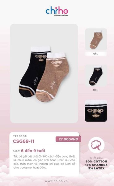 - Tất bé gái dệt chữ CHIHO cách điệu cùng thiết kế chun mềm, co giãn linh hoạt.